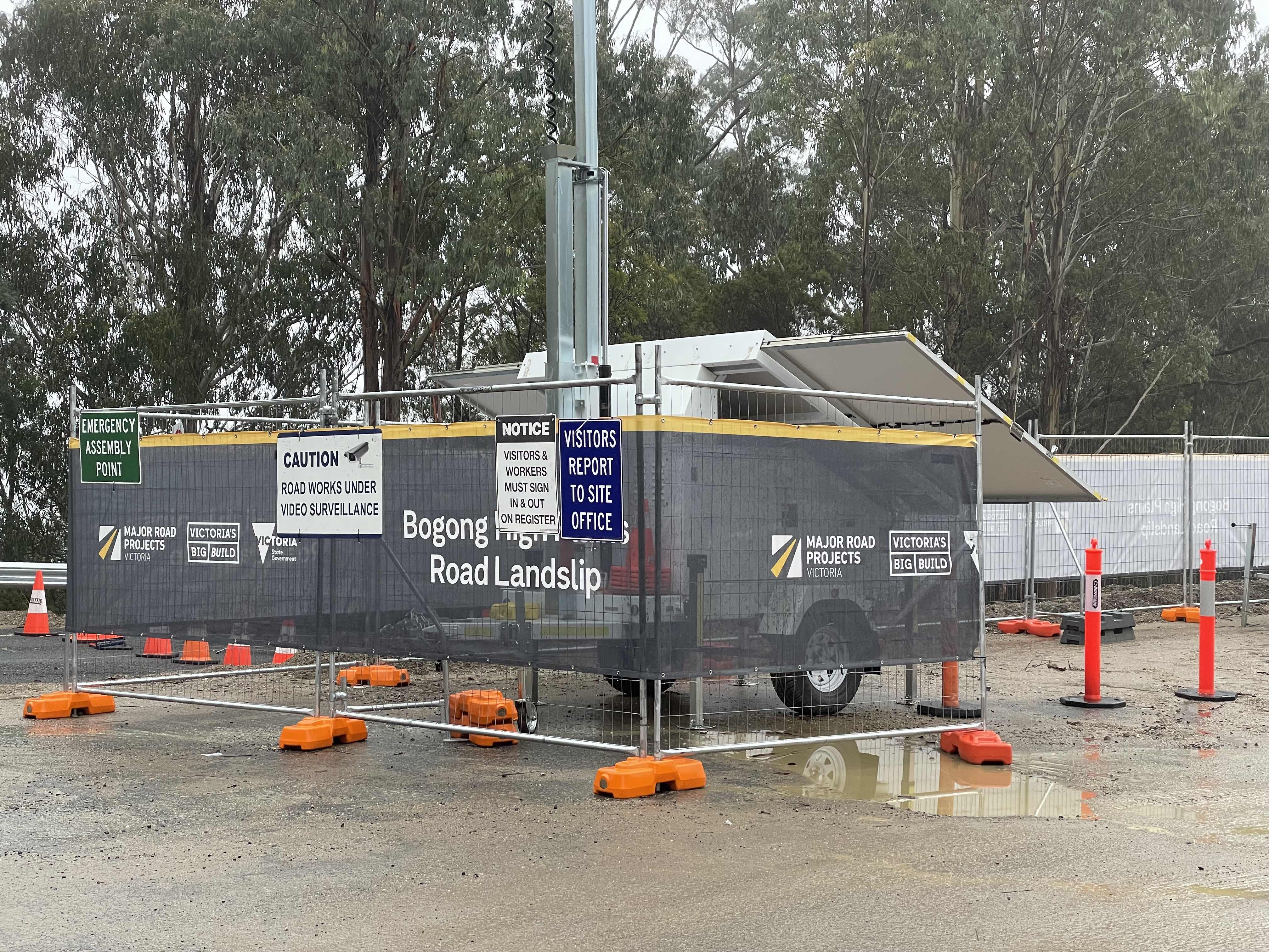 Recording of dump truck driving towards landslip.